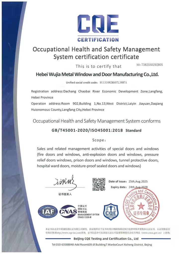 职业健康安全管理体系认证证书2025年-2028年英文版